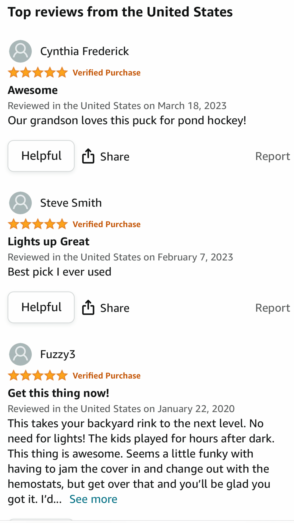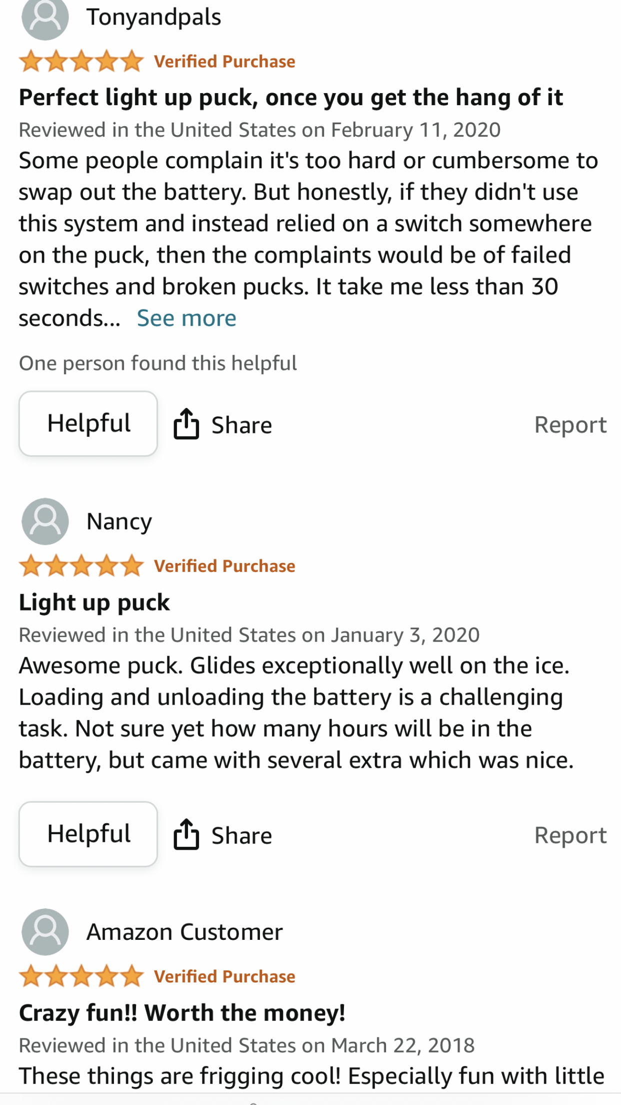 Regulation 6oz. Light Up Ice Hockey Puck. Great for Backyard Rinks and Ponds. Feels Exactly Like a Real Ice Hockey Puck. Rigorously Slap-Shot Tested. Hard Rubber. Superior Design, Quality and Durability. Made in U.S.A.